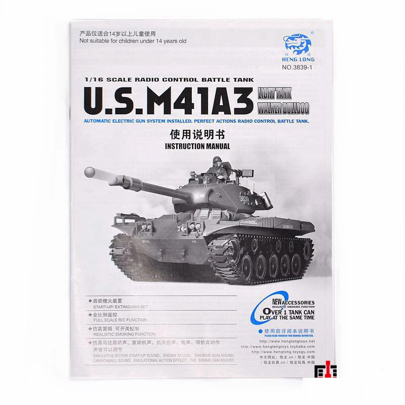 HENG LONG 3839/3839-1 RC tank U.S.M41A3 1/16 spare parts No. Manual / booklet / instruction of smoking tank