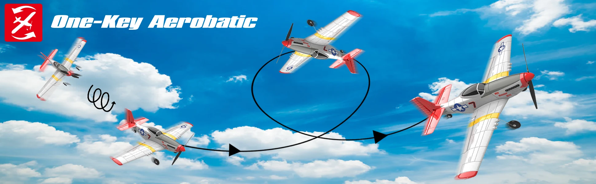 The VolantexRC P51 Mustang with gyro is one of the best RC airplane for beginner kids and adult. It come with Aileron, great sport performance, with one key aerobatic, 6-axis gyro, one key return, durable EPP material, propeller saver.